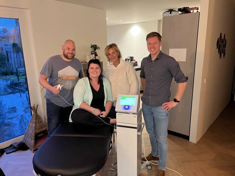 Nadat het hele bedrag voor het apparaat binnen was hebben we deze natuurlijk meteen in bestelling gezet. We wisten dat dit een tijdje zou gaan duren, want tja.. zo een mooi en duur apparaat hebben ze nu eenmaal niet in grote voorraden klaar staan. Op 9 november was het zover.. ze kwamen het apparaat brengen en we kregen hier een uitleg bij. Vincent was thuis en mijn tante, Yvonne (oprichtster van de actie), kwam ook. Vanaf nu kan het echt gaan beginnen! Wat is dit onwijs speciaal.. wie had dit ooit bedacht en vooral.. zo snel! We kregen van 'Electro Medico', het bedrijf waar we het apparaat hebben besteld, ook nog een hele mooie massagetafel cadeau. Super lief en fijn geholpen.